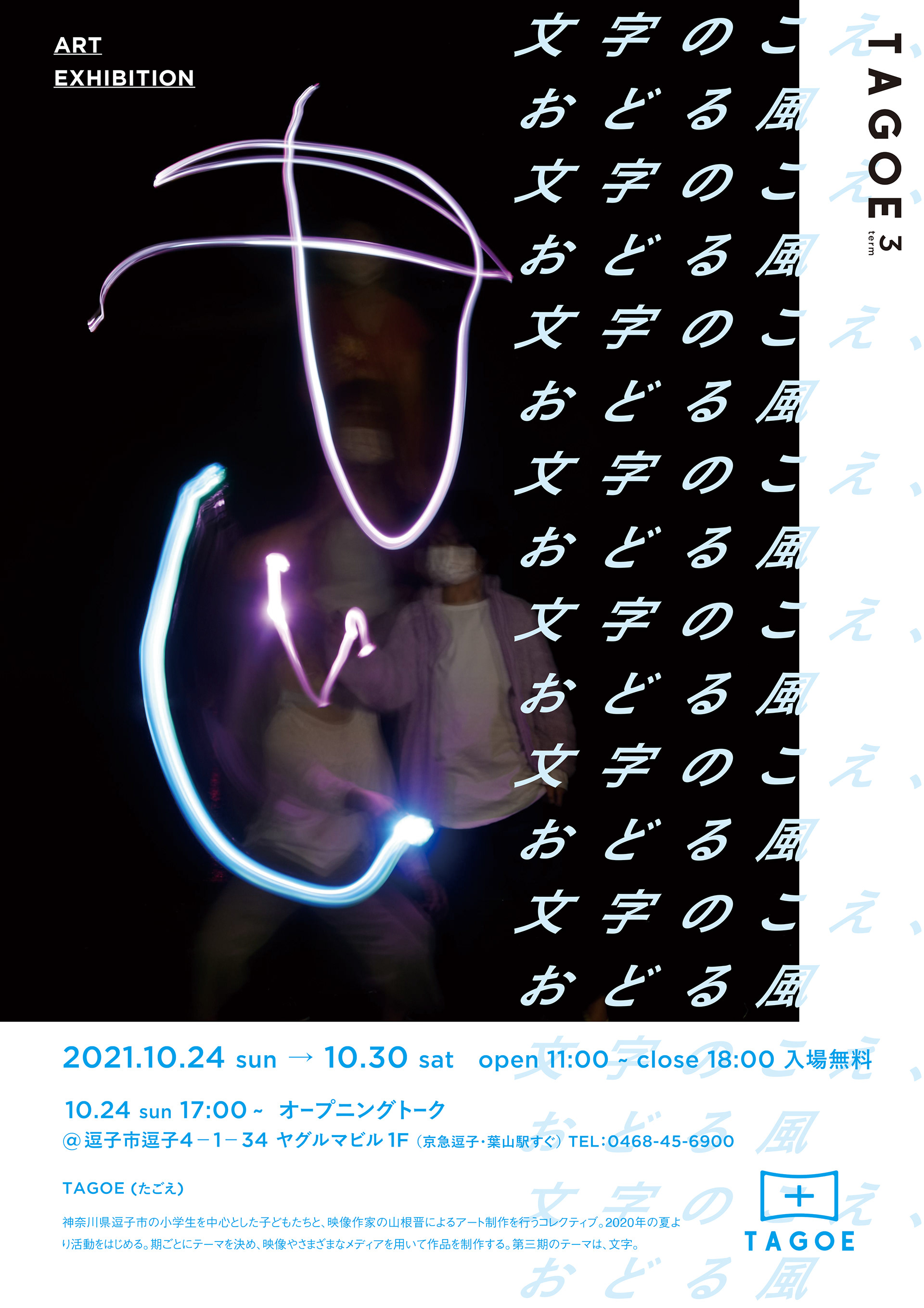 神奈川県逗子市にあるアートコレクティブ「TAGOE」の展覧会のためのグラフィックデザイン
